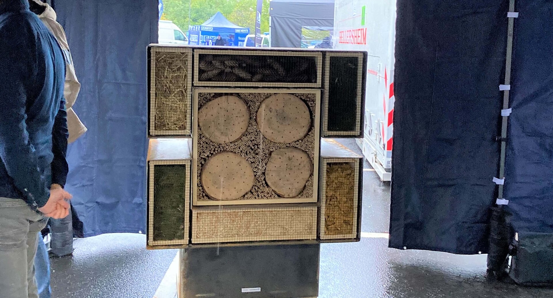 Die Idee für das Projekt entstand in Zusammenarbeit von Ausbildern, Marketing, Azubis und den dualen Student:innen. Das hauptausschlaggebende Argument für den Bau des großen Insektenhotels war es, zusätzlich eine nachhaltige Mitmachaktion für alle Besucher:innen der „ABOM“ auf die Beine zu stellen. Auf dem KLEUSBERG Messestand konnte man kleine Insektenhotels selber bauen und im Anschluss als Erinnerung mit nach Hause nehmen. Gleichzeitig gab es bei der Aktion etwas Besonderes zu gewinnen – eine superschicke KLEUSBERG Relaxliege.