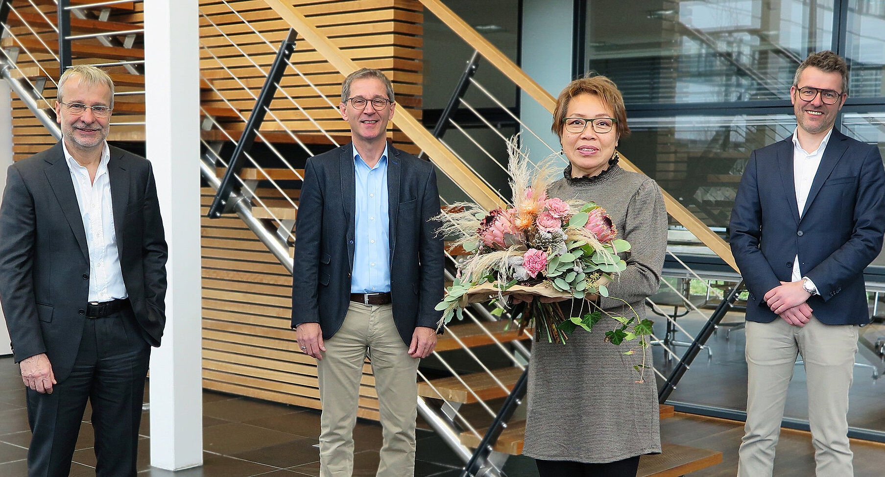 Auf dem Bild v.l.: Stefan Kleusberg, Valentin Hof, Marie Bogart, André Triphaus-Woltermann