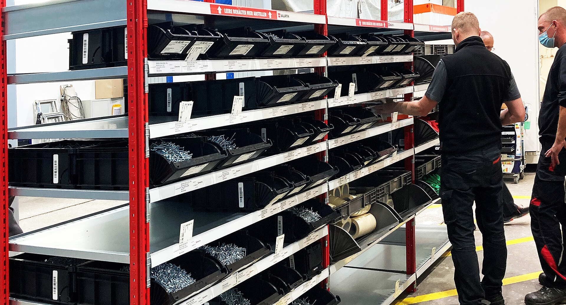 Bereits vorsortiert in Kunststoffkisten und ohne Umverpackung der einzelnen Schrauben, Nieten o.ä. werden die Verbrauchsartikel an unseren Standorten angeliefert und an die zuständigen Abteilungen zur weiteren Verarbeitung verteilt. Die besagten Kisten finden im Nachgang – wie die Wertstoffe in einem C2C-Kreislauf auch – den Weg zurück zum Lieferanten, der sie für die nächste Befüllung verwendet. Rund 300 Artikel befinden sich derzeit im Bestellsystem. In den kommenden Monaten werden weitere Güter aufgenommen. Bei beispielsweise Spanplatten setzt KLEUSBERG auf PEFC-zertifizierte Produkte, die das Umweltzeichen „Blauer Engel“ tragen: Geringe Umweltbelastung, geringer Ressourcenverbrauch, Verzicht auf schädliche Substanzen und Erfüllung hoher Qualitätsanforderungen. Merkmale, die auch auf unsere eigenen Systeme und damit auf KLEUSBERG als Partner, Bauunternehmen, Arbeitgeber und Auftraggeber zurückzuführen sind.